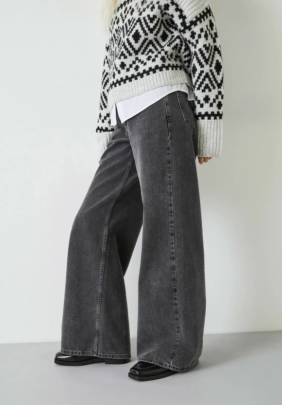 Wide-leg jeans? They’ve taken over our denim drawer. And the Abi, in their dark grey wash, sit somewhere between smart and weekend wear. So you can slip them on under oversized shirts and blazers just as often as classic crewneck knits and slogan tees.