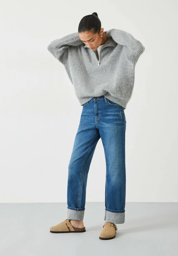 One of the big benefits of cool, late-summer days? Rediscovering our dark denim. Finished with a deep indigo wash, our straight-leg Agnes jeans have adjustable turn-ups at the cuffs – perfect for rolling down over sandals, and up over ankle boots.