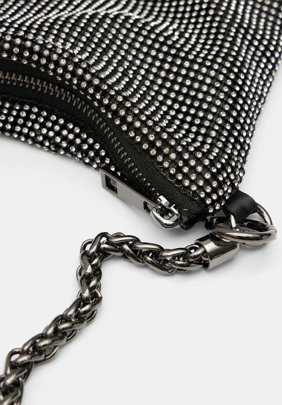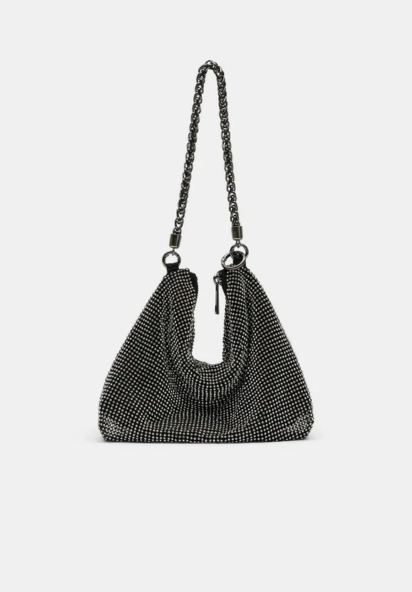 Chain handles and slouchy, pouch-style silhouettes are trending right now when it comes to accessories. Which is why we combined both for our Alma bag. And in a nod to the noughties, we’ve covered it in tiny gem embellishments for a dose of sparkle that makes any outfit party-ready.