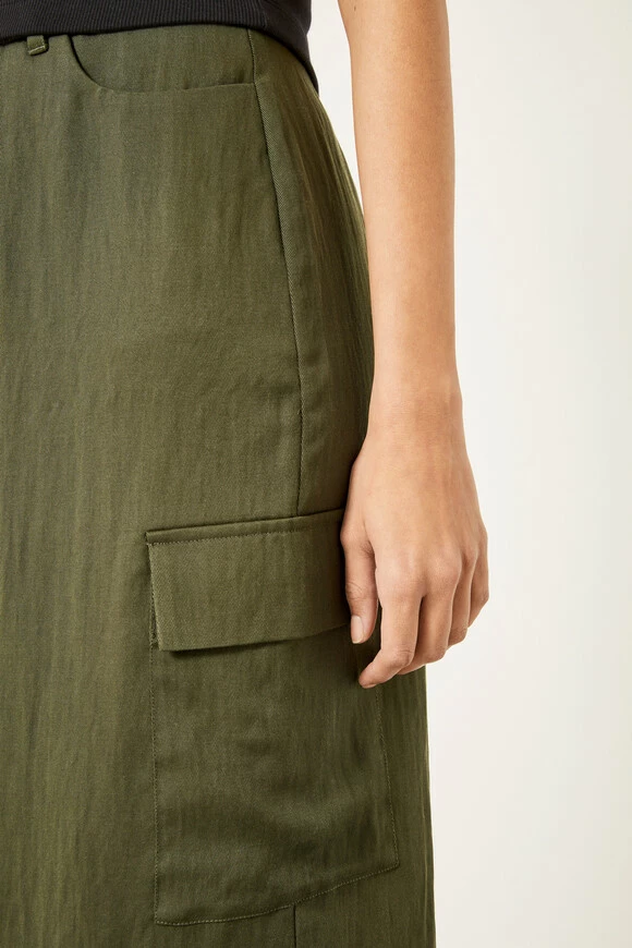 We all know that several style staples from the 90s have made a major comeback recently. So we’ve adapted the classic cargo trousers into this cool, lightweight skirt. Cut to a column-style silhouette that’s trimmed with the signature utility details, it finishes at an on-trend knee-length hemline.