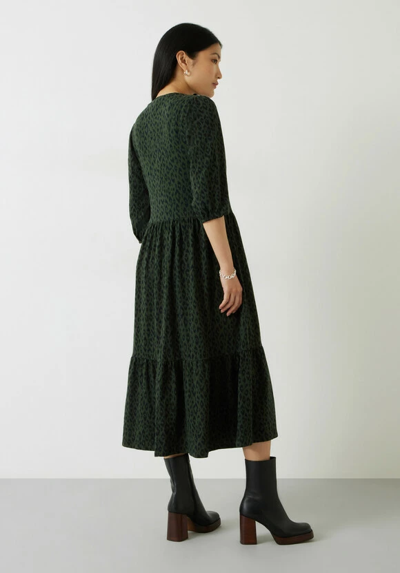 Everything about our printed Athena dress is stretchy: the elasticated waist, the tiered hem and even the cuffs. It’s made from super-soft jersey too, delivering all the comfort of your favourite loungewear pieces in a daytime-appropriate style. We’ll be wearing ours with bare legs and ankle boots, adding chunky-knit socks on chilly autumnal days.