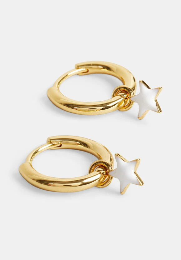 Adorned with a delicate star-shaped charm crafted from pastel-hued enamel, our Effie huggie hoops are plated with shimmering 18-carat gold. Layer them up alongside tonal studs, or wear them solo as an everyday staple.