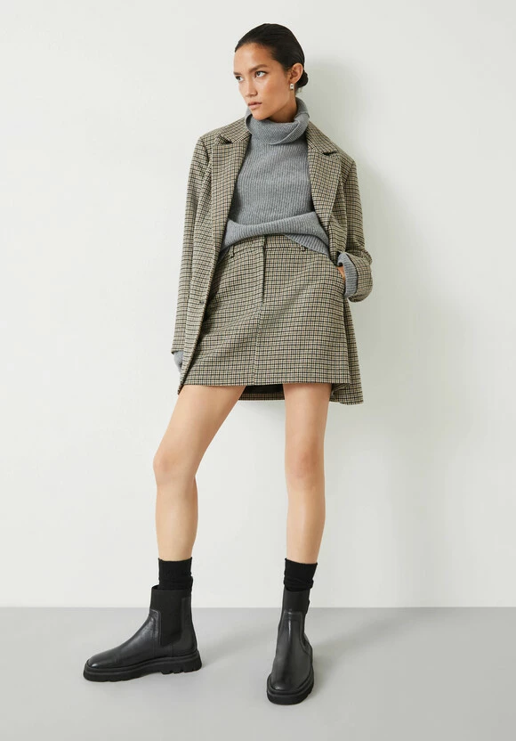 Think tailoring has to be formal? Think again. An elevated take on classic suiting, our Esmae mini skirt is made with a heavy hint of wool to create a cosy, thigh-skimming silhouette that works from winter through to spring. Just wear it over chunky boots or preppy, strapped flats.