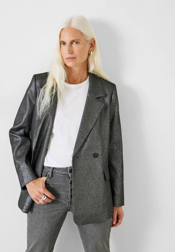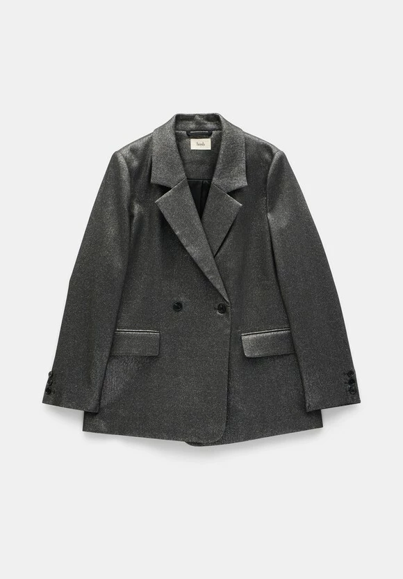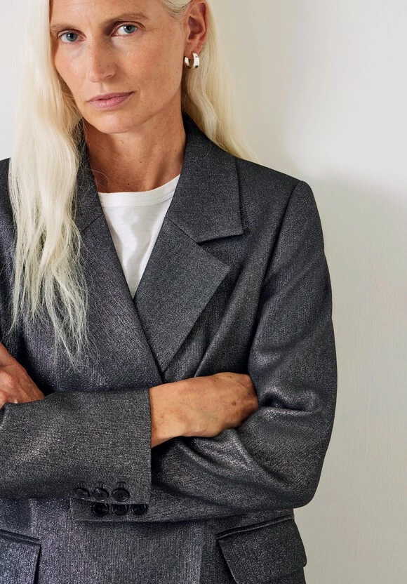 Party-ready pieces don’t always mean dressing all the way up. Our Hazel blazer combines a classic cut with a cool, contemporary metallic fabric for seasonal sparkle that works both day and night. Chuck it on over the matching trousers and a simple long-sleeved tee.