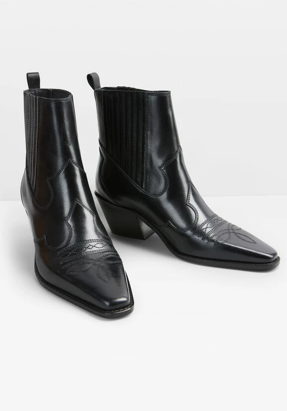 Classic cowboy boots are everywhere this season. And we’ve created a sleek, grown-up take for our latest collection, crafting our Kendall boots from smooth leather. Note the style’s western inspiration coming through in the angled block heel and tonal stitching at the cuff.