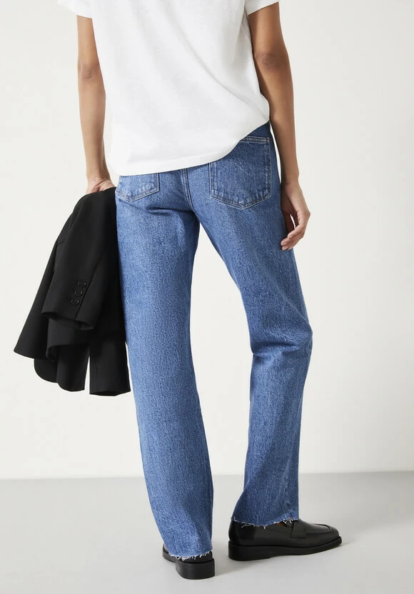 Our take on the staple straight-leg, high-rise styles, the Laurie jeans are as classic as they come. With a special construction that gives a little life in all the right places, this pair is imbued with just a hint of stretch so that they hold their shape, and has a cool raw edge at the cuff. Plus, like all our denim, they’re made with a low-impact washing process.