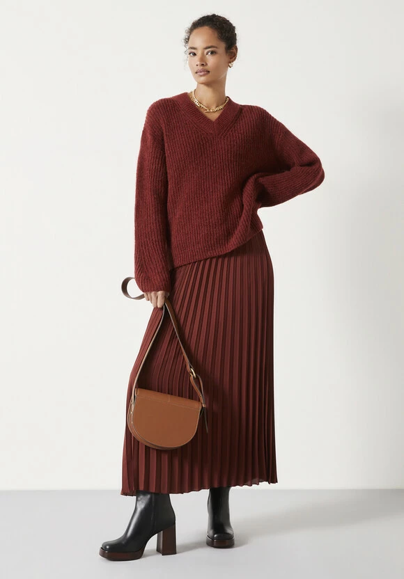 The pleated skirt is a style you’ll find us calling on throughout the seasons, but the rich autumnal shade of our newest Neah midi means it’s perfect for the colder months. Spun from lightweight chiffon that makes it great for layering, it suspends from a comfortable, stretchy waistband.
