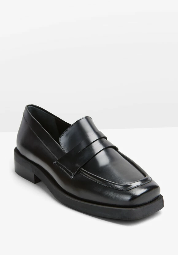 Much like oversized suiting, chunky footwear has been dominating our wardrobes for seasons now. And we can’t wait to add these Neesha loafers to the collection. Crafted from a smooth, glossy leather, their sleek, square-toed silhouette is easy to slip on over socks or bare feet.