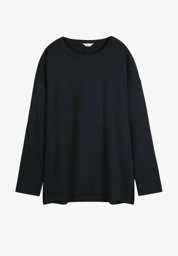 Made from a weighty pure cotton, our Rackhell split-hem top is ready for when our short-sleeved layers slowly start giving way to warmer styles. Wear it solo with jeans and skirts before winter calls for bundling it under cosy knits and cosy coats.